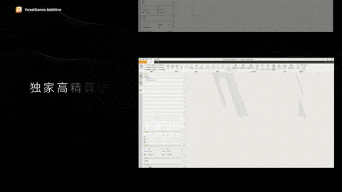 作为连接数字模型与物理成形的桥梁,中科煜宸与漫格科技深度合作,借助VoxelDance Additive(VDA)数据处理软件,深度赋能RM720Ax12多激光大幅面3D打印设备,通过智能算法与工艺策略的完美融合,实现了关键性能指标的跨越式提升。