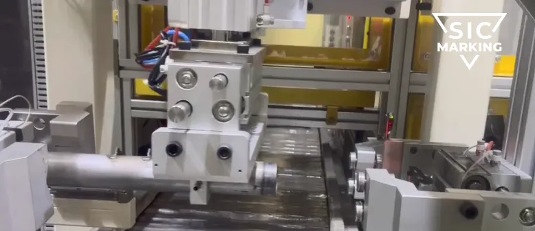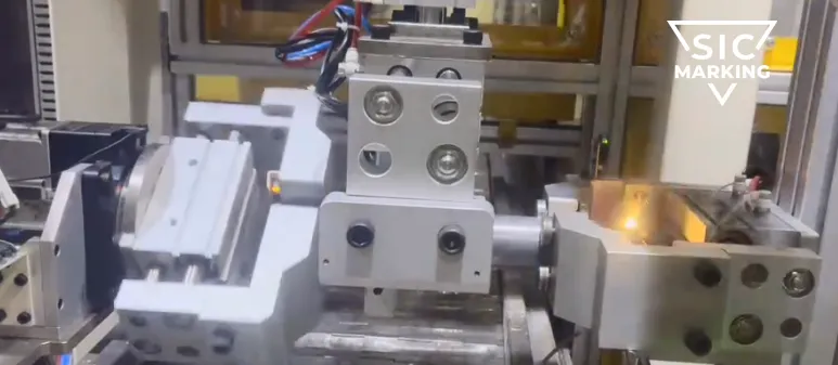 1、西刻标识采用一整套激光清洗集成方案,使用i104激光清洗设备,以15秒/件的频率,高效去除减震器的焊接部分氧化层。