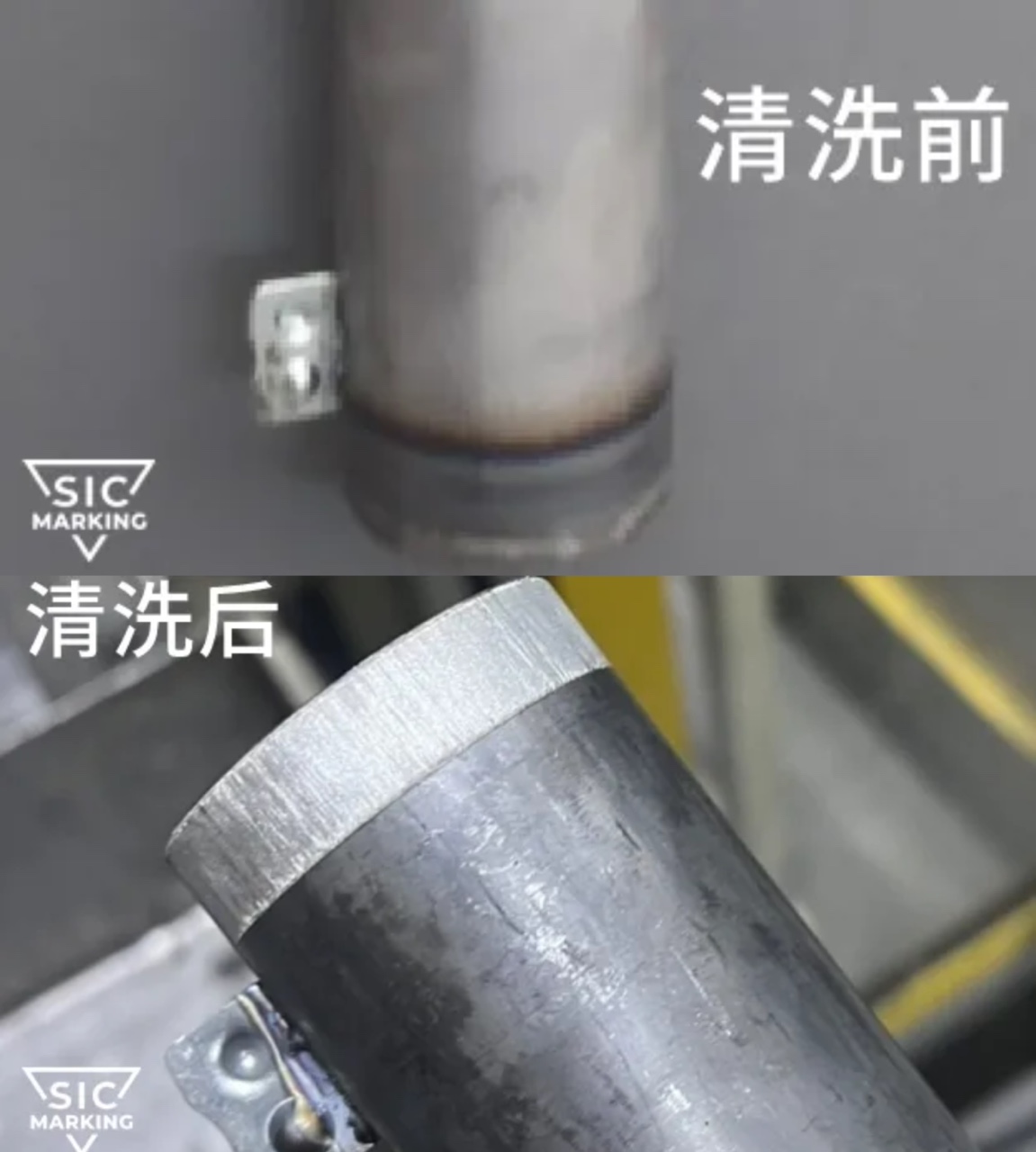 3、清洗要求:在将减震器焊接部分表面的氧化层清洗干净后,保证激光清洗后工件表面不受损,为后续的加工、涂装或检测提供良好的基础。
