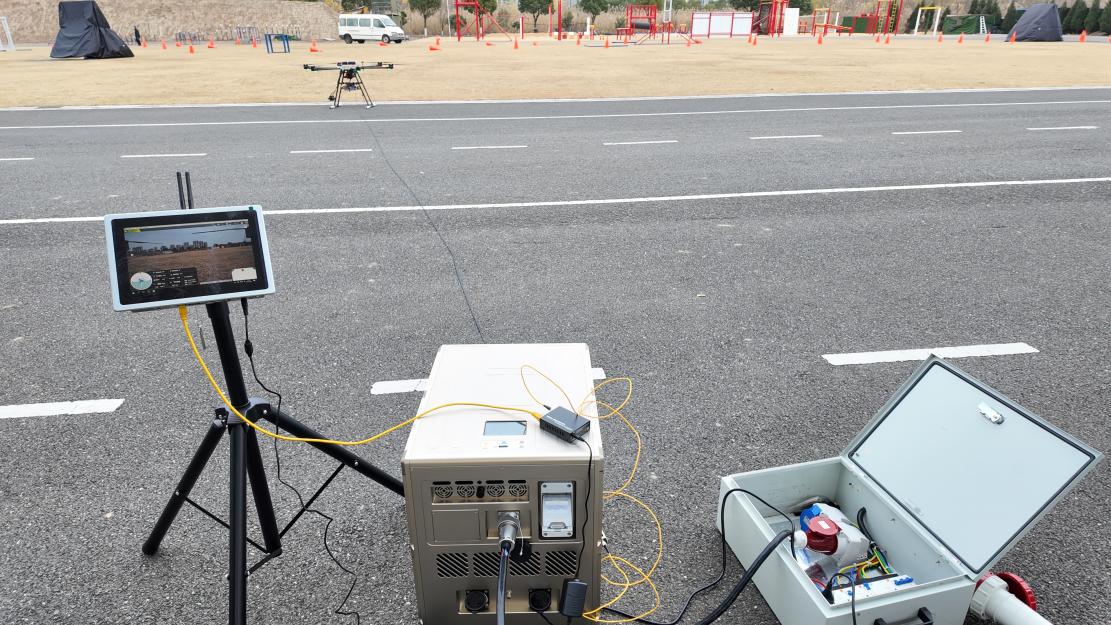 光纤传输与无信号起降技术破解了极端环境的核心痛点。针对高海拔“拒止”环境下的信号屏蔽难题,系统搭载光纤数据传输链路,构建起不受电磁干扰的“专属信息通道”,实现千兆级带宽的高清图像与数据实时回传,延迟低至毫秒级,确保指挥中心与空中平台的高效协同。更值得称道的是,其独创的无信号环境起降技术,无需依赖外部卫星或网络信号,通过地面有线指令即可完成精准起降,彻底摆脱了复杂电磁环境对作业启动与回收的限制。