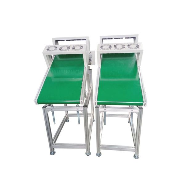 波峰焊出板机主要用于全自动波峰焊锡机后与生产线连接,其主要功能包括PCB板的稳定传输、温度控制和生产线自动化衔接。在波峰焊接工艺完成后,PCB板及元件温度通常较高,需要及时有效的冷却处理,同时确保板材在传输过程中的稳定性和安全性。