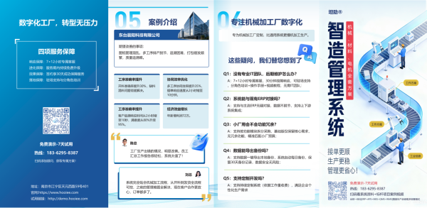 服务保障体系:企业提供1对1顾问服务及7×12小时技术支持,累计服务上百家制造企业,续约率达到95%以上。获评AAA级重合同守信用企业、AAA级诚信经营示范单位,拥有2项软件著作权。