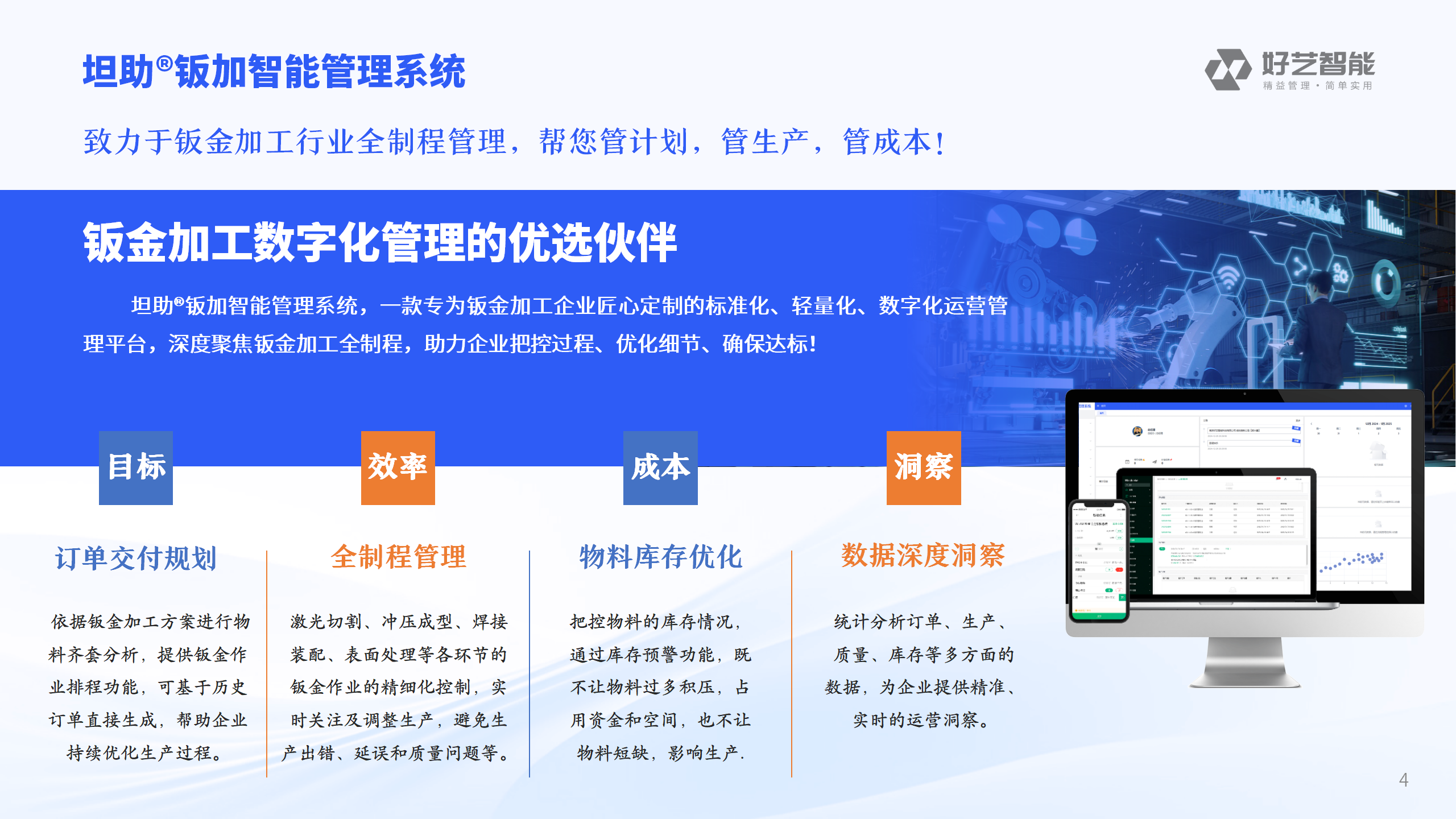 在钣金行业材料利用率低、急单插单响应慢的生产管理难题下,南京好艺智能科技有限公司凭借坦助®智能制造管理系统的ERP+MES一体化架构,实现了从排产优化到质量追溯的全流程数字化管理。