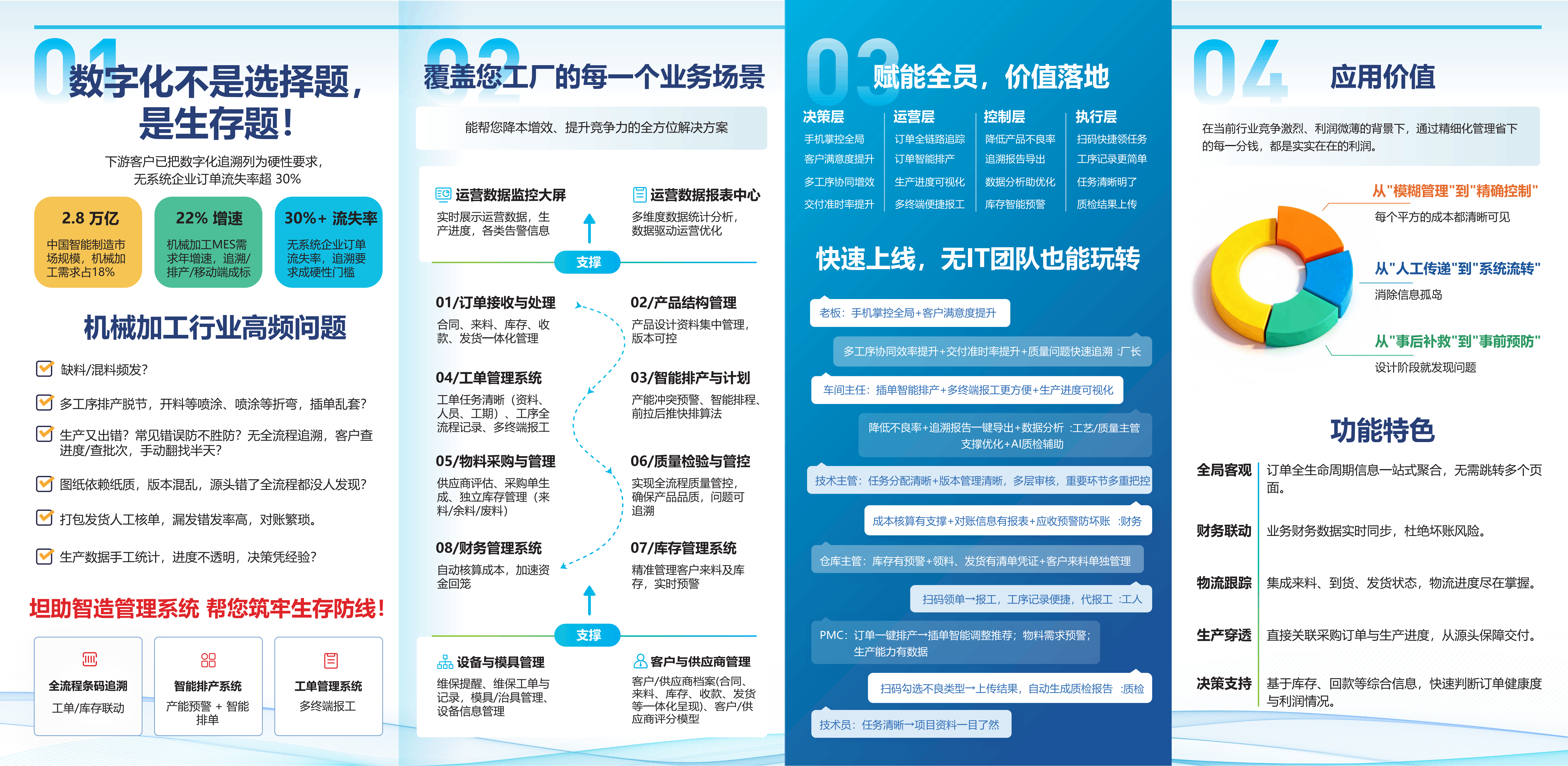 坦助®采用标准化产品与行业套件相结合的交付模式,主张"3个月见效"的快速实施理念,目前已服务上百家制造企业,续约率达95%以上。系统支持7×12小时技术支持,提供1对1顾问服务,适合50-500人规模的成长型钣金加工企业。
