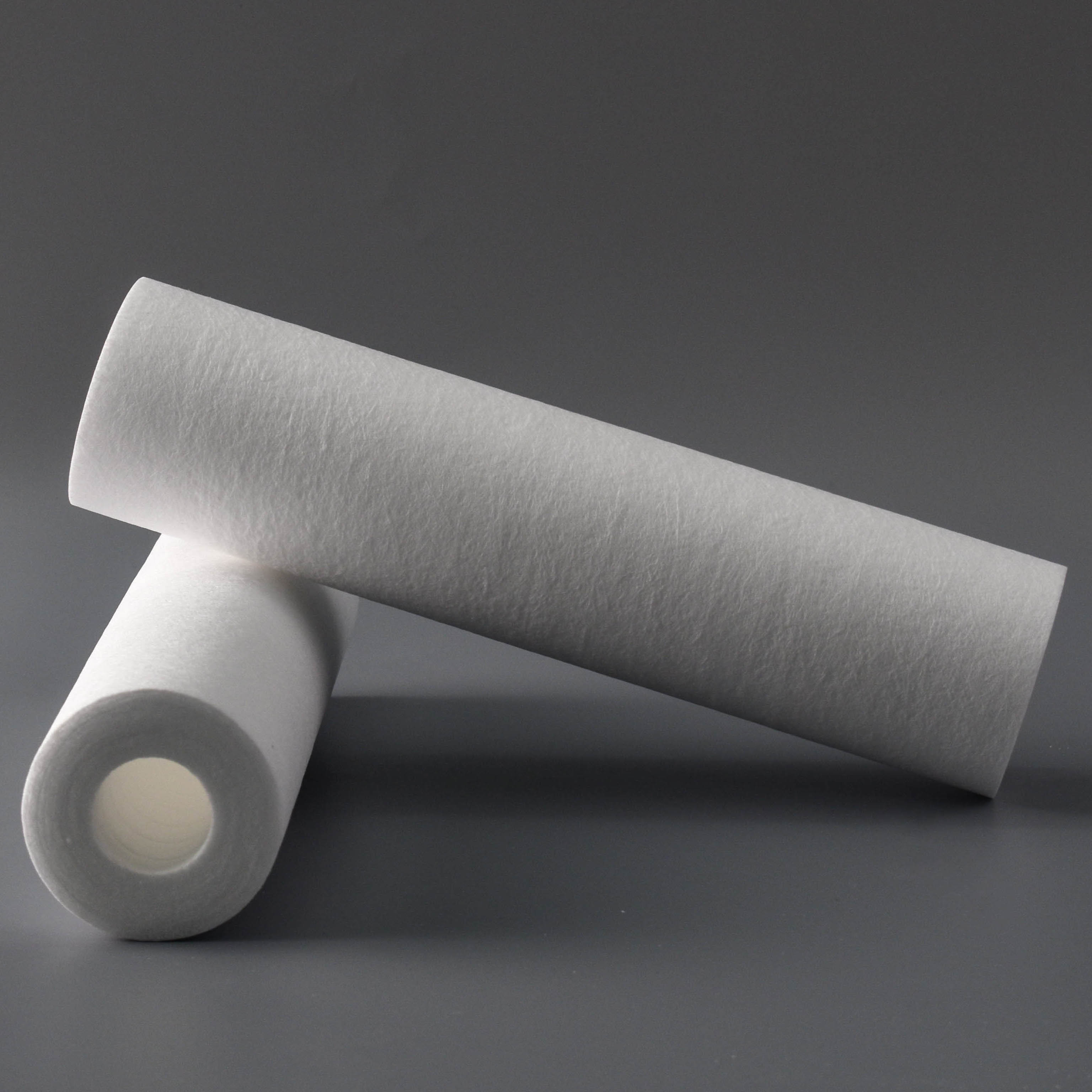 熔喷滤芯采用聚丙烯粒子为原料,经260℃高温熔融喷丝形成超细纤维,通过热熔缠结工艺制成三维微孔结构的管状过滤装置。其技术关键在于外疏内密的渐变孔径设计:外层纤维较粗、孔隙较大,承担表面拦截职能捕捉大颗粒杂质;中间层纤维逐渐变细,实现中等粒径颗粒的逐级拦截;内层达到致密状态,负责精细过滤。